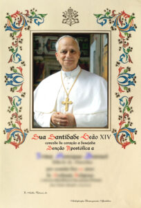 Observação: A propósito, volta-se a assinalar que, uma vez deduzidas as despesas para a preparação e expedição do pergaminho, o sobejo é inteiramente vertido para as atividades caritativas que este Departamento realiza diariamente a favor dos pobres em nome do Papa.